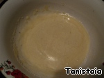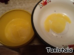 Желток растереть в эмалированной посуде с половиной нормы сахара.