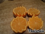 Апельсины вымыть, разрезать пополам, можно вырезать зубчиками.