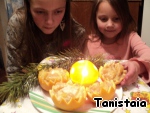 В Предновогоднюю пору зажигаются на ветвях ели Волшебные фонарики. Свет их, падая на людей, проникает прямо в сердце, зажигая в них радость, счастье, веселье. Всюду, куда падает свет Волшебных фонариков, свершаются неуловимые чудеса. У нас свет фонарика осветил не только наши сердца и души, но и апельсины, лежащие на столе. Тут же превратились наши апельсины в Волшебные корзиночки...