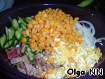 С кукурузы сольем жидкость. Выложим в салатницу.