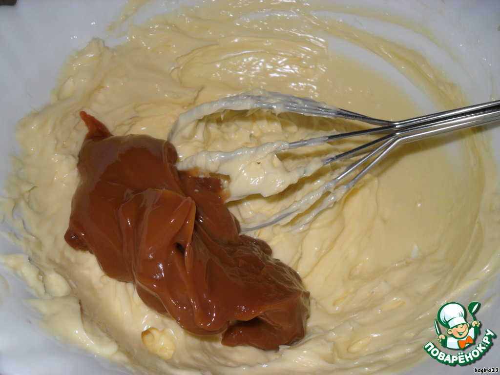 Теперь нужно взбить 400 мл сливок, и ввести их во взбитую массу. Крем готов.