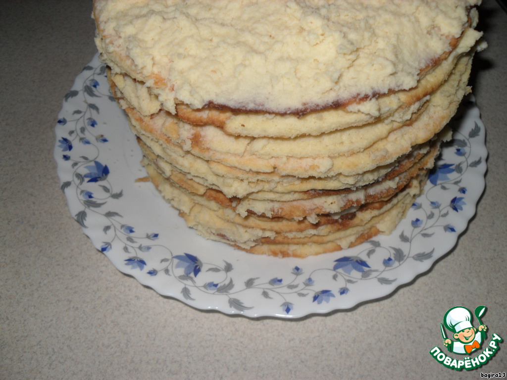 Готовым кремом смазать песочные коржи (осторожно, сильно не надавливать - очень хрупкие) и оставить пропитываться на такое же время, как и медовик.