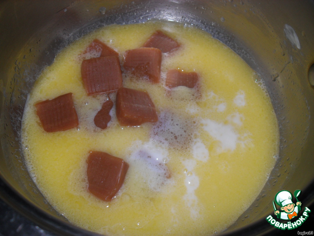 Теперь приготовим глазурь из ирисок для покрытия мишки.