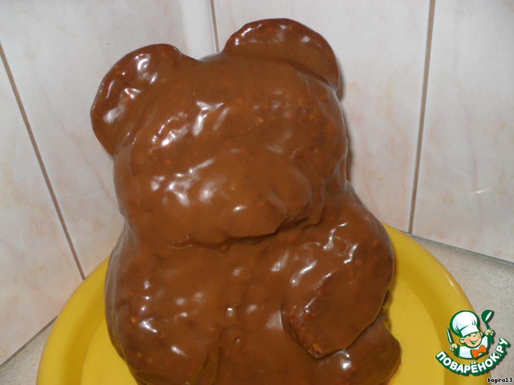 Торт (вернее, два торта:-) ) получился довольно большой (мишка в высоту 20-25 см) и вкусный.
