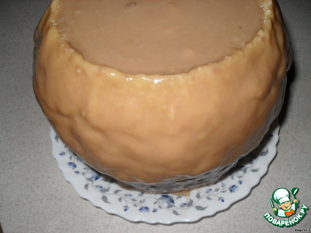 Теперь займемся горшочком. Готовому пропитанному торту придаем форму горшочка или кувшина... Кто как умеет :-D