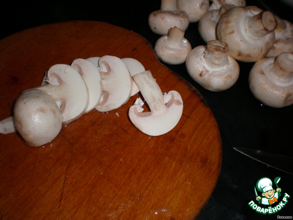 По желанию, сверху можно натереть сыр, только в области грибов, тоже очень ничего!!! У меня сыра не было..