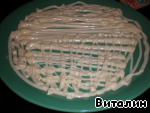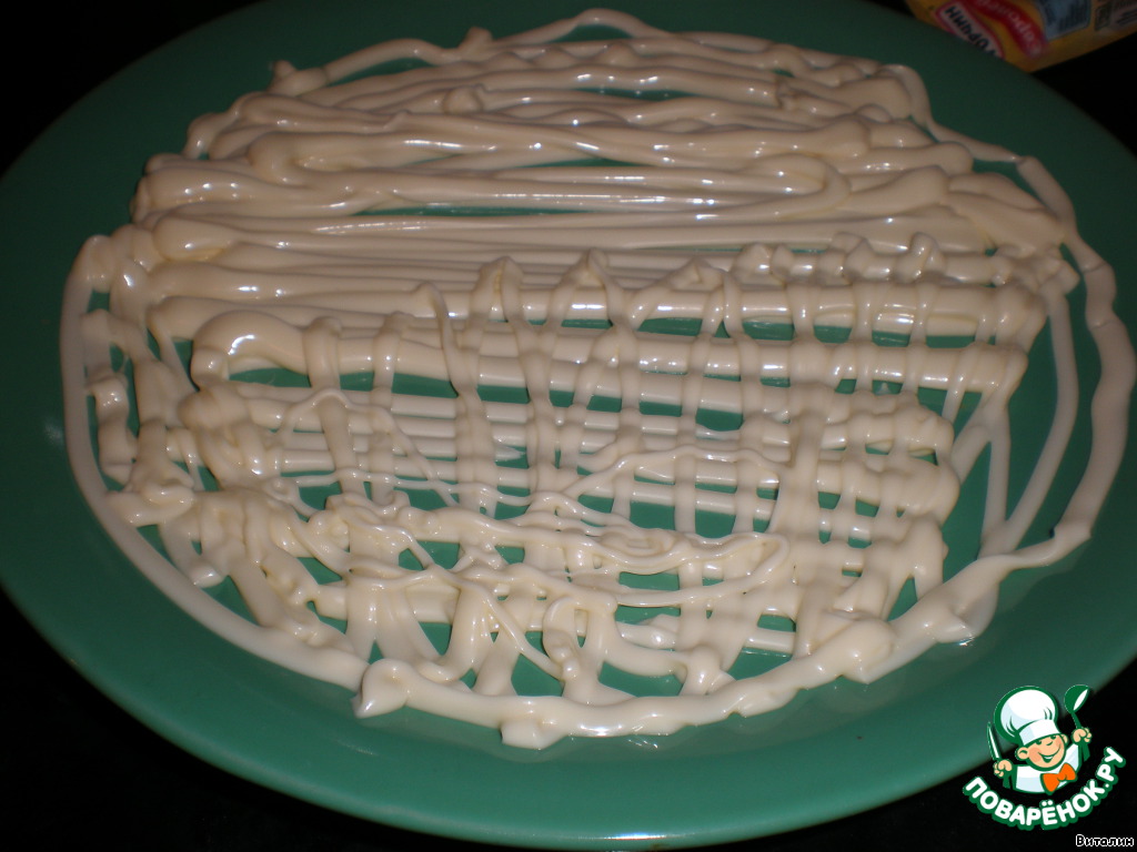 Затем на дно блюда наносим обильно майонез и все, нам больше он не понадобится.