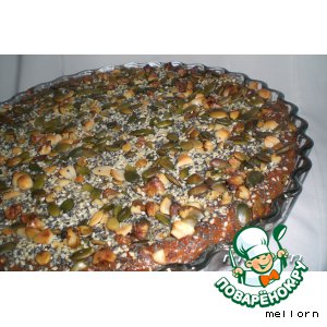 Сверху на тесто распределить орехово-семечковую смесь.