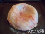 Куриной кожей покрыть фарш.