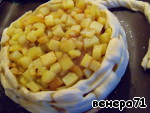 Обернуть его слоеным тестом, сверху положить жареный картофель. -