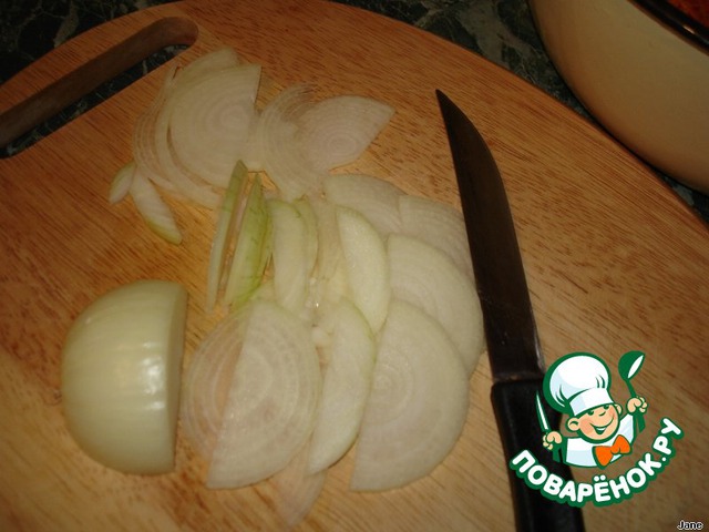 Лук порезать тонкими полукольцами.