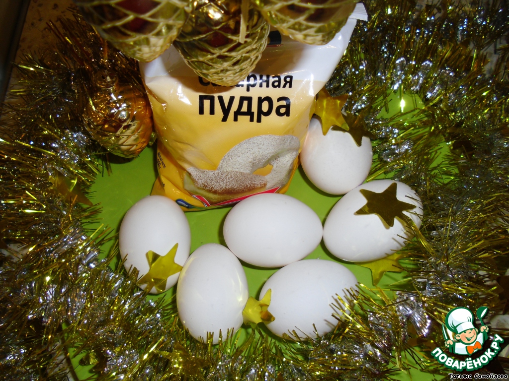 Белки отделяем от желтков, взбиваем, постепенно добавляя сахарную пудру.
