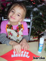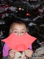 Пока настаивается пудинг... мы вырезаем ЗАГАДОЧНУЮ УЛЫБКУ из красной бумаги.
