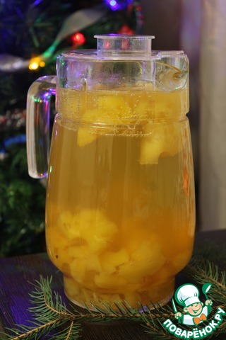 «Пока часы двенадцать бьют». Рецепт этого блюда был размещeн на сайте в 2009 году пользователем smirn под названием «Крюшон с ананасами» и иллюстрирован мной в рамках акции "Раскраски". Вкусно, празднично, ароматно и пьяно.