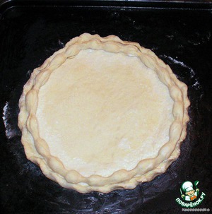 Украшаем пирог, смазываем смесью желтка с водой и ставим в духовку, разогретую до 250 -ти градусов. Печем до румяности – где-то 10 минут.