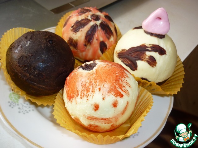 Отправляем ириски в микроволновку на 1 мин и формируем из них шапочки.