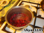 Варим сироп:наливаем в кастрюльку воду, добавляем сахар и ставим закипать.Когда вода закипит -- кладем ягоду (у меня клюква)и даем покипеть минут 10-15.