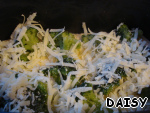 Посыпала тертым пармезаном. Мне кажется, подойдет любой твердый сыр, а плавленый сырок надо порезать тонкими пластинками.