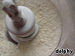 Для теста в чаше кухонного комбайна соедините 1 стакан муки, соду, щепотку соли и 90 г охлажденного сливочного масла. Взбейте до состояния мелкой хлебной крошки.