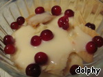 Также можно добавить слой ягод (у меня клюква) или фруктов, вареной сгущенки.
