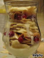 На дно стакана положите 1 - 1 1/2 ст. л. крема, затем слой измельченных коржей. -