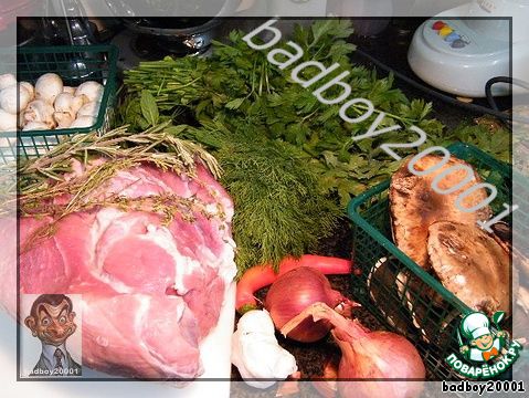 Ингредиенты для "Свиная лопатка с грибами, черносливом и орехами":