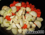 Выкладываем на сковородку с небольшим количеством подсолнечного масла. Для людей, которым нельзя жареное, можно просто нарезанные овощи выложить в кастрюлю, не обжаривая.
