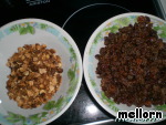 Обжарить арахис и разрезать на 4 части. Изюм ошпарить кипятком.