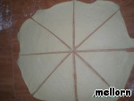 Тесто разделить на 5 частей. Из каждой части раскатать круг и разделить на 8 секторов.
