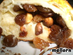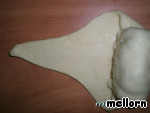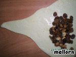 На широкий конец каждого сектора положить как можно больше начинки (тесто эластичное и хорошо тянется) изюма и арахиса.