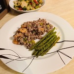 Завтра мы с мужем уезжаем отмечать Новый Год в Литву и решили до отъезда пригласить родителей на предновогодний ужин. В меню был крем-суп из морепродуктов, который я уже публиковала, легкий салат и новое блюдо – рис с креветками и спаржей.