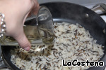 Готовый рис выложить в глубокую сковороду, добавить 50мл белого полусухого вина, поварить 5 минут.