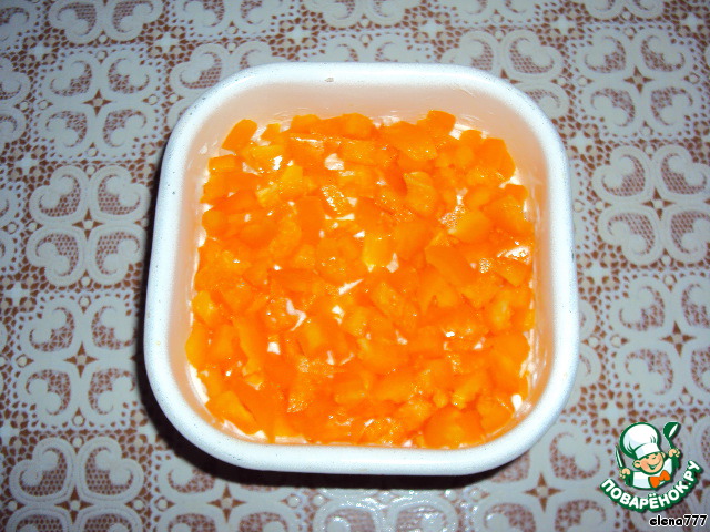 Следующий слой - 1 шт порезанного кубиками болгарского перца.