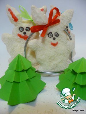 На противень, выстеленный бумагой для выпечки, выкладывать ложкой меренги в форме "кролика".