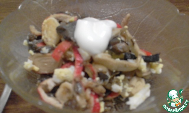 Рецепт «Салат с жареными крабовыми палочками и грибами»: