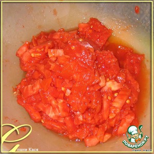 Помидоры или мелко режем или пропускаем через мясорубку.