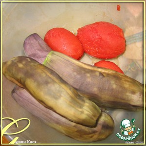 Баклажаны (выбираю некрупные, варить удобнее и семечки мельче) на 5 минут закидываем в кипяток, достаем, очищаем от кожицы. Также поступаем с помидорами, только их достаточно просто обдать кипятком.