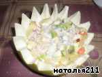 Вынуть мякоть, и сделать резные края из кожуры. Это будет наш "салатник".