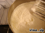 Снимаем миску с кастрюли и продолжаем взбивать яично-сахарную смесь до остывания оной и появления пиков.