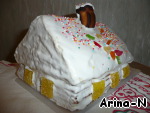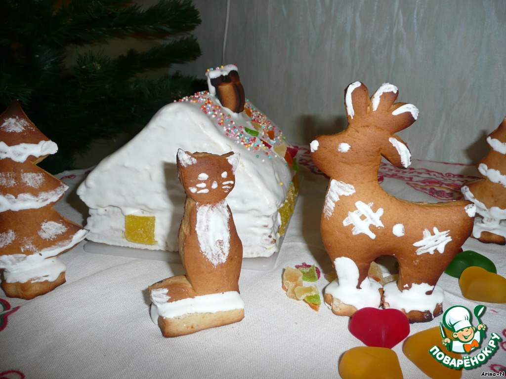 Собираем домик, покрываем глазурью, украшаем мармеладом, цукатами, кондитерской крошкой и в холодильник часа на 2-3 для пропитки -