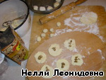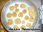 Пять крутых желтков натереть на мелкой терке. Добавляем к ним пачку масла, сметану, муку. Вымешиваем тесто. Делаем 40 лепешек.