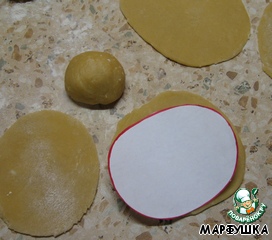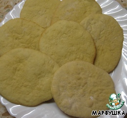 Выкладываем на противень и ставим в разогретую духовку примерно на 4 минуты (коржи должны приобрести слегка желтый цвет). -