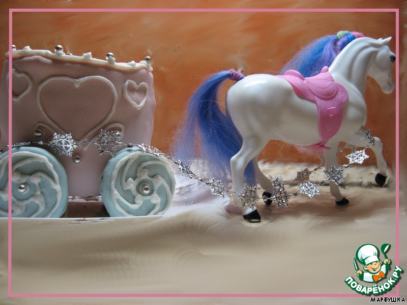 Готовим айсинг - 1/3 часть белка (1яйца) смешиваем с сахарной пудрой и лимонным соком. Наносим на карету рисунок.