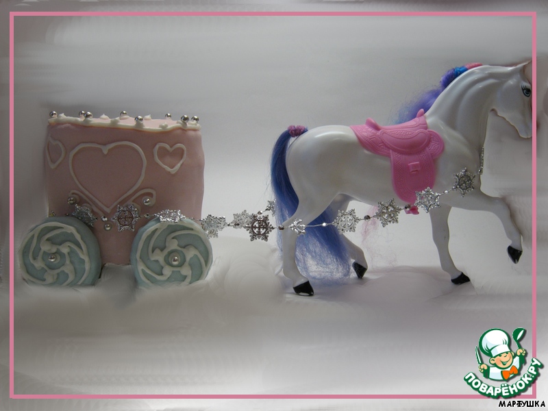 Розовой мастикой обтягиваем саму карету, голубой - колеса.