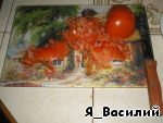 Режем помидоры короткой соломкой.