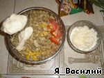 Добавляем майонез и солим по вкусу.