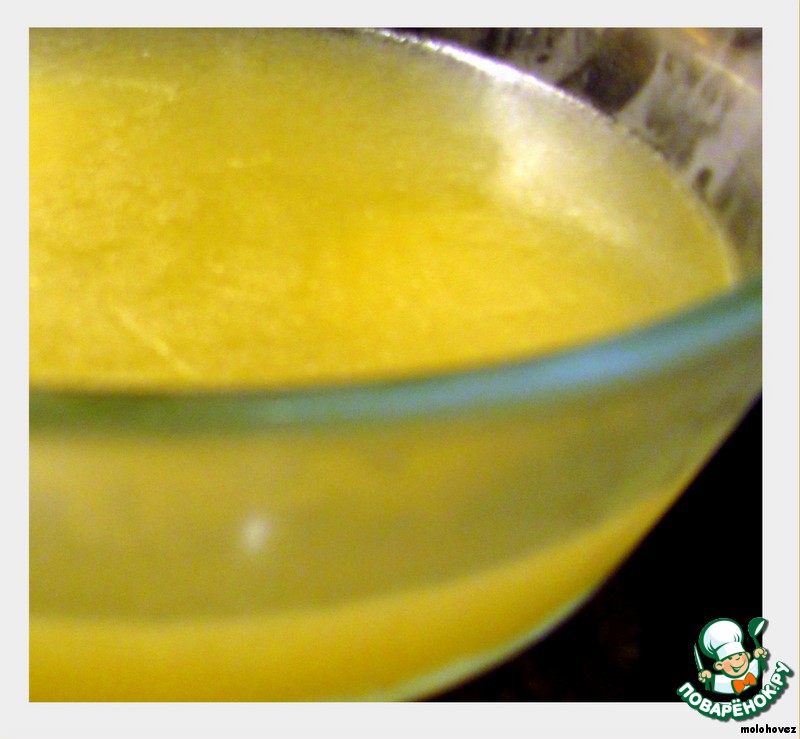 Литр бульона процедила и добавила к нему 2 пакетика желатина, сок и ломтики лимона. Поставила в холодильник.