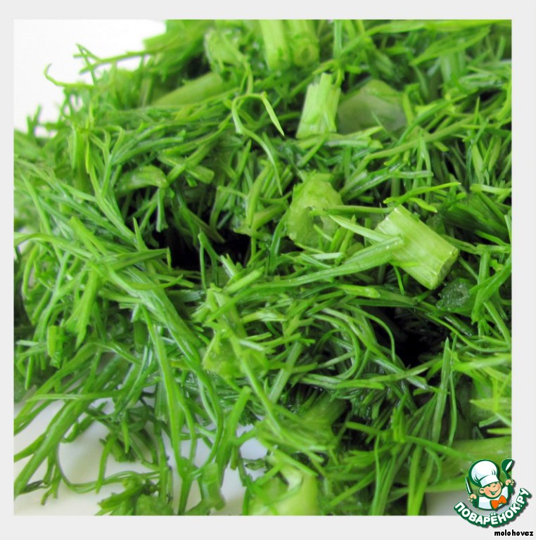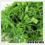 Салат взяла с плотными листьями. Нарезала его и посыпала сверху перед подачей.