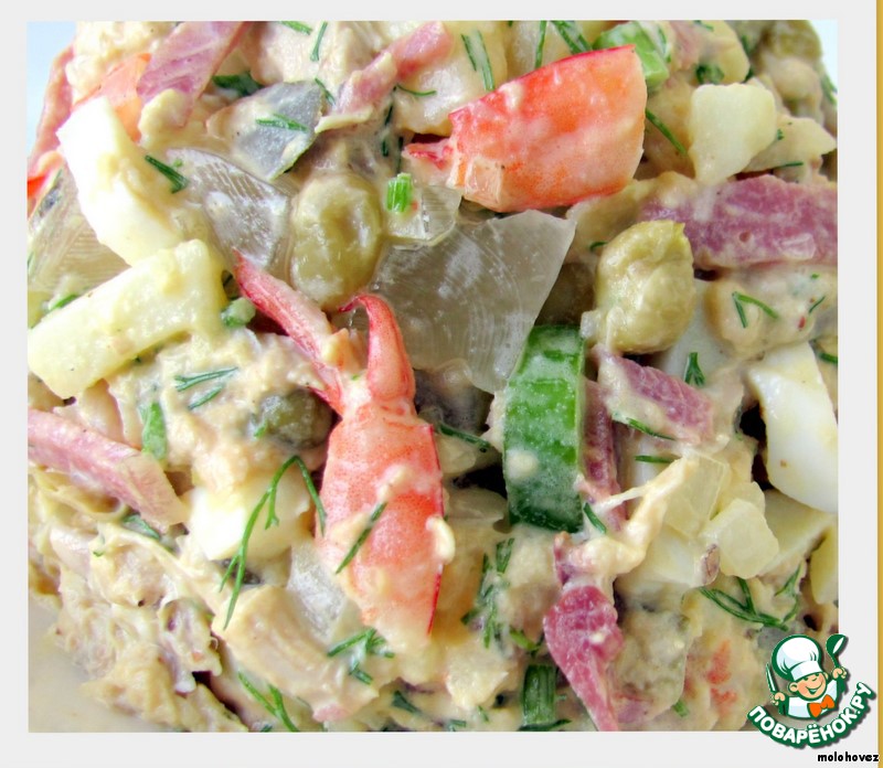 "Многоуважаемый Люсьен Оливье! Не корысти ради, а в целях кулинарных изысканий и восстановления хотя бы приблизительного вкуса Вашего фирменного блюда, салата "Оливье", созданного для ресторана "Эрмитаж", провожу я этот эксперимент. Жаль, что не было в конце 19 века чудесного сайта "Поваренок", где бы Вы смогли увековечить свой непревзойденный рецепт. И не унесли бы тогда с собой в могилу секреты салата и тайные ингредиенты, над которыми уже более ста лет ломают головы лучшие рестораторы! Простите мою вольность, о чем прочла, что из продуктов нашла, что, по традиции, добавила... - из того и создала... "