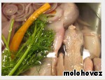 Перепелов отварила со всевозможными кореньями и травами. Мясо очень нежное.
